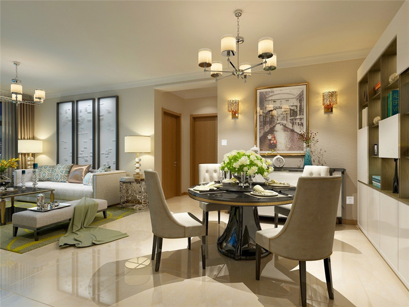 | 案例說明 | ?本案用的是現代風格。簡潔的屏風,邊上靠置了一個矮鞋柜,體現了業主生活的精致。客餐廳瓷磚通鋪,配以墻面淺色乳膠漆,加上以白色為主色調的家具裝飾,使整個空間簡潔明了。客廳背景墻采用白色石材,內嵌電視,簡單大方。 | ||